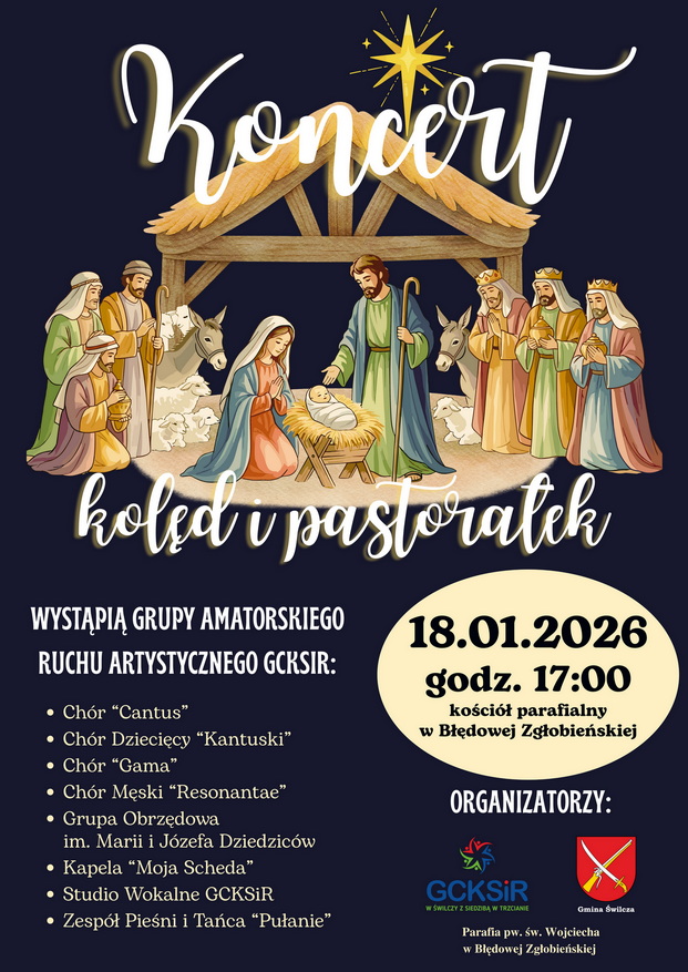 W niedzielę 18 stycznia odbył się Koncert kolęd i pastorałek zorganizowany przez Gminne Centrum Kultury, Sportu i Rekreacji w Świlczy z siedzibą w Trzcianie i parafię pw. św. Wojciecha w Błędowej Zgłobieńskiej pod patronatem Wójta Gminy Świlcza. Wystąpiły zespoły amatorskiego ruchu artystycznego GCKSiR: Fragmenty Pisma Świętego odczytali Marcelina Dziedzic i ksiądz proboszcz Stanisław Szeliga.