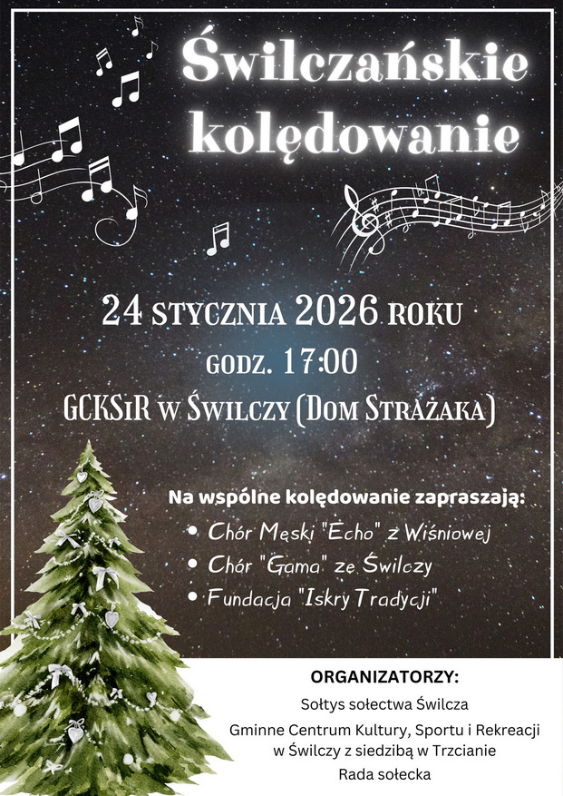W sobotę 24 stycznia w filii GCKSiR w Świlczy po raz drugi z inicjatywy Pani Sołtys i Rady Sołeckiej, a przy współpracy Gminnego Centrum Kultury, Sportu i Rekreacji odbyło się Świlczańskie kolędowanie. W koncercie wystąpili: Na koniec wszyscy zostali obdarowani przez Mikołaja słodkościami przygotowanymi przez Radę Sołecką.